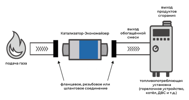 Катализатор-экономайзер (резонансный диссоциатор топлива) адаптируется под конкретные условия эксплуатации: для подбора количества активных элементов достаточно данных о расходе газа на объекте. Универсальность конструкции обеспечивает широкий диапазон применения и успешно эксплуатируется на различных топливопотребляющих установках – горелочных устройствах, котлах, ДВС и др.